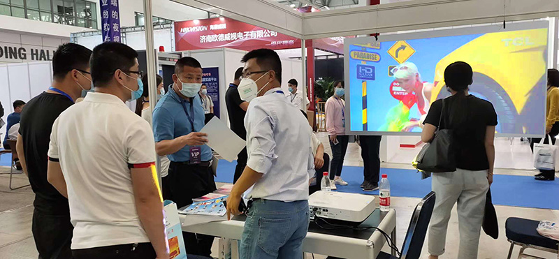 哈图科技展位位于主展厅E厅T6展位,展出了包括G系列、L系列、教育E系列等各系列正投、背投纳米光屏产品。纳米光屏的一屏双显、超高清晰成像、纳米超薄、多层内成像技术、超大可视角、自过滤有害光、高色彩还原等一些列特性,吸引了众多观众参观交流。客户现场咨询不断,对纳米光屏的成像效果赞不绝口。